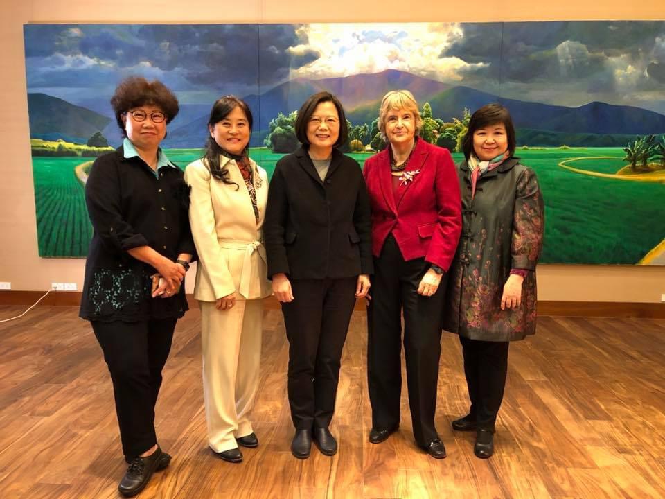 En la foto superior, la presidenta Tsai está en el centro, y los otros tres son líderes del Capítulo de Taiwán que ayudaron principalmente en el enlace y los arreglos para la entrevista de Julia Martínez con la presidenta de AMMPE Taiwán, Alice Gao, y las socias Jean Shi y Flora Fu.
