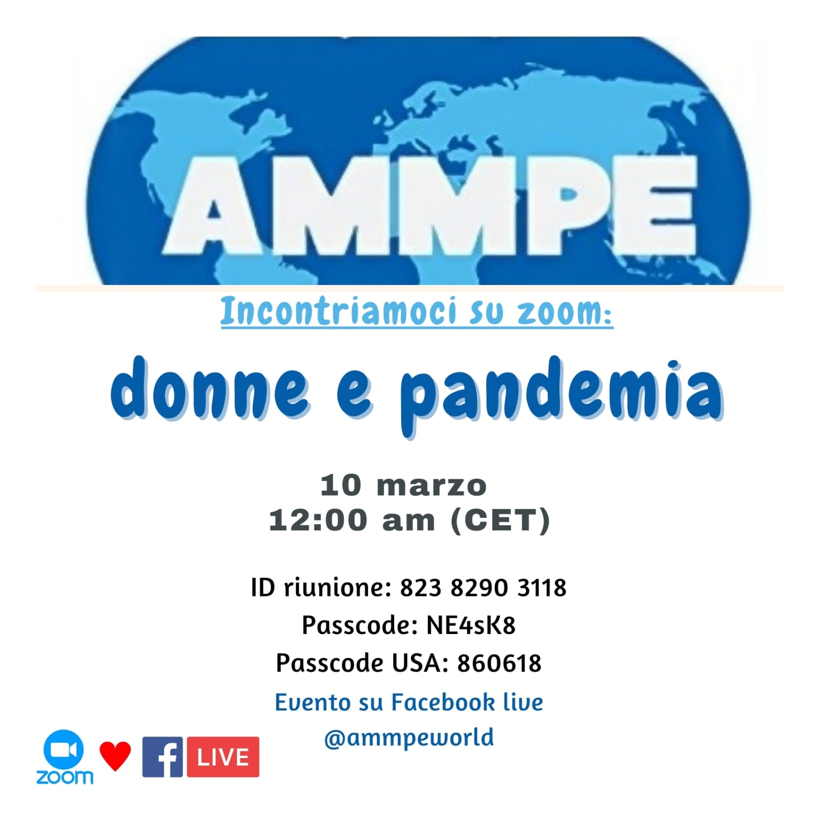 «Donne e Pandemia» è il titolo dell’Incontro Internazionale organizzato da AMMPE a cui hanno partecipato donne provenienti da quattro continenti: America Latina, Asia, Africa ed Europa. Da tutti gli eventi è emerso un dato indiscutibile: noi donne siamo state quelle più colpite dalla pandemia in tutte le sfere della nostra vita.